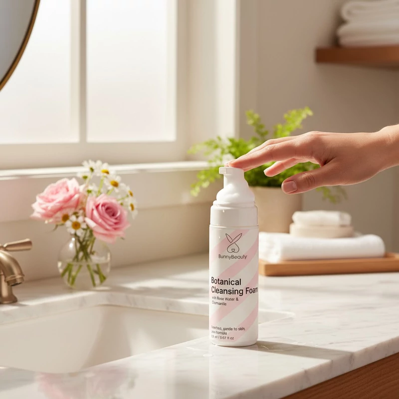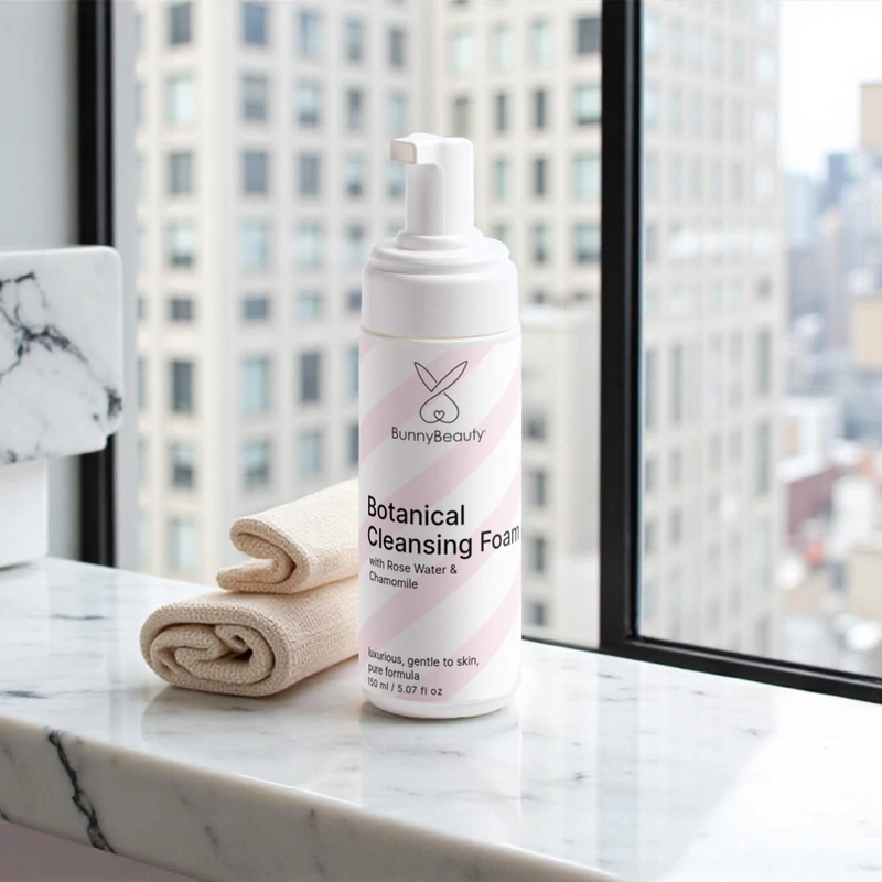 Rózsavíz · Kamilla & Körömvirág · Rizspor · Hialuronsav komplex Gyengéd luxus tisztítás a ragyogó bőrértFedezd fel a tisztaság és a frissesség új dimenzióját! A BunnyBeauty Cleansing Foam könnyed, selymes habja kíméletesen, de hatékonyan távolítja el a szennyeződéseket és a sminket. A rózsavíz frissíti és hidratálja a bőrt, míg a kamilla- és körömvirág-kivonat nyugtatja és csökkenti az irritációt. A rizspor természetes módon finomítja és puhává varázsolja a bőrt, a hialuronsav komplex mélyen és a bőrfelszínen is hidratál. A vörösáfonya, fekete ribizli és bodza antioxidáns ereje segít megvédeni a bőrt a környezeti hatásoktól, és friss, ragyogó bőrtónust biztosít.